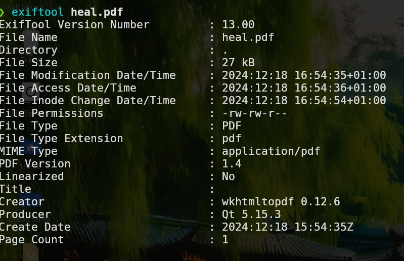 This web give us two options, log in or create an account. If we crate an account we can start to create our cv. After finishing it, a pdf will be donwloaded in our machine. If we check the metadata we will see in the creator field wkhtmltopdf with the version 0.12.6.